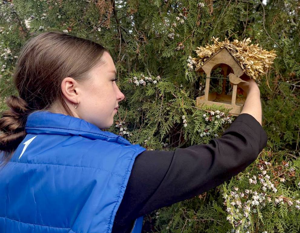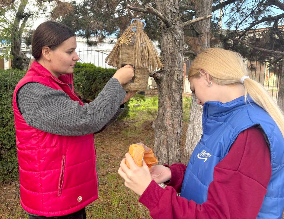 Активисты Движения Первых участвовали в акции «Братья наши меньшие». Студенты почистили прошлогодние кормушки, насыпали корма.