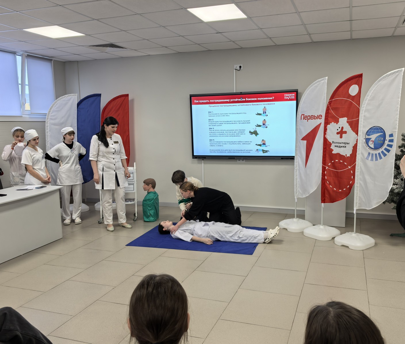 В рамках реализации проекта «#МЫВМЕСТЕ - Месяц Добрых дел», в преддверии празднования дня добровольца Всероссийским общественным движением добровольцев в сфере здравоохранения «Волонтеры-медики», совместно с отделом по делам молодежи администрации муниципального образования Ейский район и команды «Санинструктор» под руководством наставника Сергиенко Надежды Александровны проведен мастер-класс по оказанию первой помощи для студентов «Ейского морского рыбопромышленного техникума».